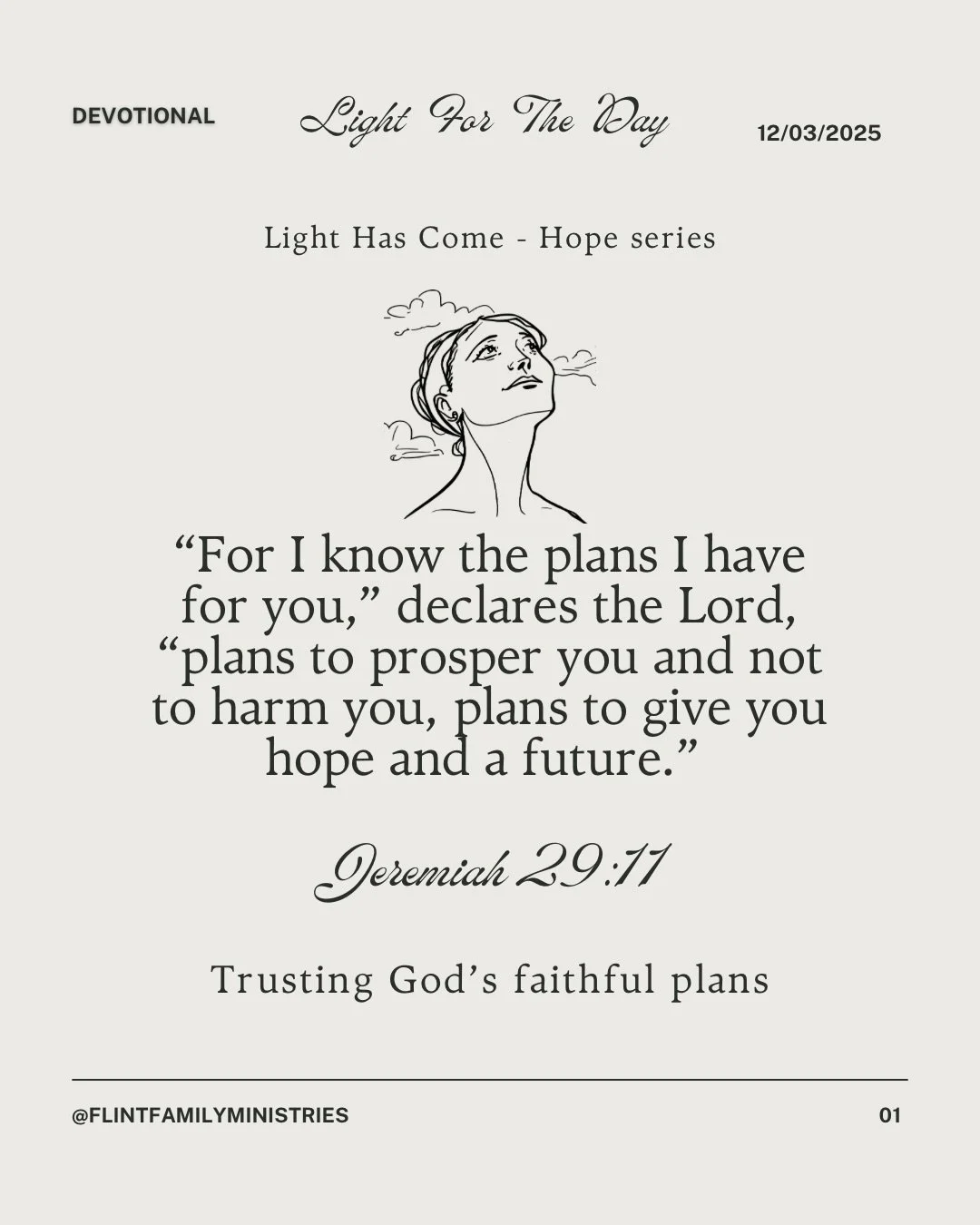 This verse is not a vague promise, it is a declaration of God’s heart toward His people. His plans are not to harm us, but to prosper us. His desire is to give us hope when we feel hopeless, and a future when we cannot see beyond today.